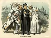 "Between Two Popes", Puck cartoon satirizing the controversies