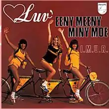"Eeny Meeny Miny Moe" is the seventh single by the Dutch girl group Luv', released in the summer of 1979 by Philips/Phonogram Records. This song appears on the formation's second album Lots Of Luv' and entered the record charts in Benelux, German-speaking countries and Denmark.
