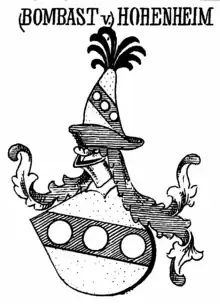 The first mention of the family is in 1120, when one Egilolf von Hohenheim made a donation to Hirsau Abbey. One Cunradus de Hohenheim miles cognomine Bambast ("Conrad von Hohenheim, knight, also called Bambast) is mentioned in 1270 (donation to Herrenalb Abbey).[1] But the von Hohenheim did not regularly use the byname Bombast until the time of Hans Bombast von Hohenheim (attested between 1342 and 1404).[2]