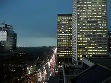 Once the first phase of Line 5 Eglinton is completed by Metrolinx in 2024, the existing bus lanes on Eglinton between Black Creek Drive and Kennedy Road will be significantly reduced, providing an opportunity to redesign the street. In 2014, the municipal government of Toronto released a report proposing a redesign of the street to provide generally a four lane roadway over the underground LRT, with a three lanes (two traffic and centre turning lane) between Avenue Road and Mount Pleasant Road. The variation in number of lanes is based on lower car traffic volumes near Yonge Street. The redesign would also provide wider sidewalks and a continuous raised bicycle lane that would be the longest bike lane in the city. The initial implementation of the redesign would be carried out with the reconstruction at Crosstown line station locations that would be funded as part of the Crosstown line project. Reconstruction between stations will be funded by the city and is proposed to be carried out after completion of the Crosstown line so that this does not interfere with the Metrolinx construction activity.[10][11] A planning process called Eglinton Connects drew on public consultation to evaluate options for the redesign.[12]