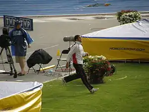 Seven Egyptian athletes, six men and one woman, qualified for the Olympics, although one did not compete. Noura Elsayed, the lone woman, was slated to run in the 800 metres, but withdrew due to injury.[14] The only Egyptian to participate in more than one event was Amr Ibrahim Mostafa Seoud, a veteran of the 200 metre event at the 2008 Summer Olympics.[15] Seoud, who had won gold medals in the 100 metres at the 2007 Pan Arab and 2011 All-African Games, and the 200 metres at the 2007 Pan Arab and 2009 Mediterranean Games, as well as the 2010 African Championships, met the "A" qualifying standard for both the 100 metres and 200 metres.[16] In the 100 he drew the same heat as world record-holder and defending Olympic champion Usain Bolt of Jamaica and finished fourth, which was insufficient to advance. He had the same result in the opening heats of the 200.[15] Hamada Mohamed met the "A" qualifying standard for the 800 metres[17] and won his opening heat in London, advancing to the semifinals. He was placed in the same heat as David Rudisha of Kenya, the world-record holder and upcoming gold medalist, and finished eighth out of nine competitors, failing reach the final.[18]