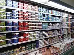Production of pickled cheeses rose from 171,000 tonnes in 1981 to 293,000 tonnes in 2000, almost all consumed locally. Imports of cheese to Egypt peaked at 29,000 tonnes in 1990, but with establishment of modern factories the volume of imports had dropped to under 1,000 tonnes by 2002.[14] Between 1984 and 2007 production of cheese of all types in Egypt rose steadily from about 270,000 tonnes to over 400,000 tonnes.[15] In 1991 roughly half of the cheese was still made using traditional methods in rural areas, and the other half was made using modern processes.[16] The common Domiati cheese was being manufactured by private dairies using small milk batches of 500 kilograms (1,100 lb), and in large government plants in five tonne batches. The government owned Misr Milk and Food Co. had nine plants with an annual capacity of 13,000 to 150,000 tonnes of dairy products.[17]