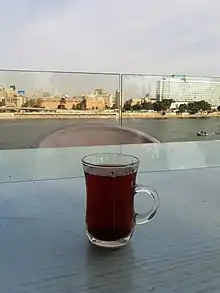Tea (شاى, shai [ʃæːj]) is the national drink in Egypt, followed only distantly by coffee. Egyptian tea is uniformly black and sour and is generally served in a glass, sometimes with milk. Tea packed and sold in Egypt is almost exclusively imported from Kenya and Sri Lanka. Egyptian tea comes in two varieties, Koshary and sa‘idi.