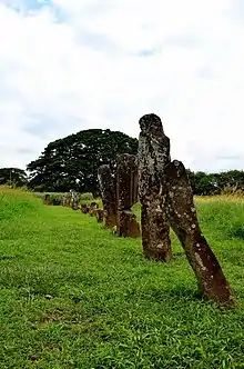 Stone monoliths found around El Caño, Panama. These monoliths are similar to the ones that originally prompted Hyatt Verrill to dig up three pre-Columbine graves along the Rio Grande River (Panama).
