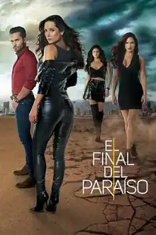 El final del paraíso is an American telenovela produced by Telemundo Global Studios and Fox Telecolombia for Telemundo that premiered on 13 August 2019 on Telemundo, and ended on 9 December 2019.[1][2] This series is produced in Colombia and Las Vegas and it was announced as a spin-off of the franchise Sin senos sí hay paraíso created by Gustavo Bolívar.[2][3] Carmen Villalobos, Fabián Ríos, Catherine Siachoque, Gregorio Pernía reprise their roles from previous series and also has the participation of Kimberly Reyes, who replaced Majida Issa in the character of La Diabla.[4]