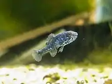 Diet likely consists of small aquatic invertebrates such as amphipods, isopods, and larvae of mayflies, caddisflies, and midges.[2]