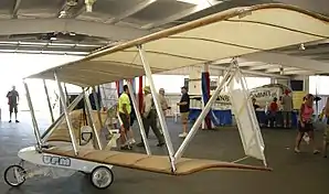 Under the direction of Freddie To, an architect and member of the Kremer prize committee, the Solar One was designed by David Williams and produced by Solar-Powered Aircraft Developments. A motor-glider type aircraft originally built as a pedal-powered airplane to attempt the Channel crossing, the airplane proved too heavy to be successfully powered by human power and was then converted to solar power,[100] using an electric motor driven by batteries that were charged before flight by a solar cell array on the wing.[101] The maiden flight of Solar One took place at Lasham Airfield, Hampshire, on June 13, 1979.[102]
