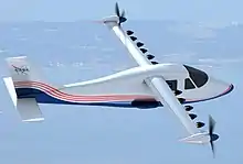 NASA was developing the X-57 Maxwell to demonstrate technology to reduce fuel use, emissions, and noise, but the program was cancelled due to problems with the propulsion system.[95] Modified from a Tecnam P2006T, the X-57 will have 14 electric motors driving propellers mounted on the wing leading edges.[96] In July 2017, Scaled Composites is modifying a first P2006T by replacing the piston engines with electric motors, to fly early in 2018, then will move the motors to the wingtips to increase propulsive efficiency and finally will install the high aspect ratio wing with 12 smaller props.[97]