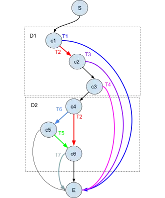 A test case consists of a logical path through one or many decisions from start to end of a process. Contradictory situations are deduced from the test case matrix and excluded. The MC/DC approach isolates every condition, neglecting all possible subpath combinations and path coverage.[1]
