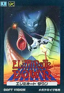 Eliminate Down[lower-alpha 1] is a 1993 scrolling shooter video game developed by Aprinet and published by Soft Vision International for the Sega Mega Drive. The game was released in Japan on June 25, 1993 and in South Korea in 1993.[1] Eliminate Down gives players immediate access to three directional-based weapons that could all be powered up as they fought strange alien enemies through eight enormous levels.