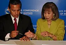 ![]() Kautz with Antonio Villaraigosa at the 2010 United States Conference of Mayors | |