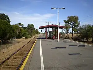 Elizabeth South railway station is located on the Gawler line.[1] Situated on the border of northern Adelaide suburbs of Elizabeth South and Edinburgh, it is 24 kilometres (15 mi) from Adelaide station.