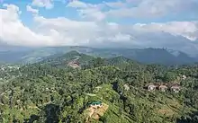 Ella (Sinhala: ඇල්ල, lit. 'fall'; Tamil: எல்ல) is a small town in the Badulla District of Uva Province, Sri Lanka governed by an Urban Council. It is approximately 200 kilometres (120 mi) east of Colombo and is situated at an elevation of 1,041 metres (3,415 ft) above sea level.[2] The area has a rich bio-diversity, dense with numerous varieties of flora and fauna. Ella is surrounded by hills covered with cloud forests and tea plantations. The town has a cooler climate than surrounding lowlands, due to its elevation. The Ella Gap allows views across the southern plains of Sri Lanka.[3]