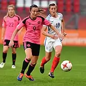 White scored in England's opening match of the 2017 Women's Euros in a 6–0 win over Scotland.[57] This followed two goals in qualifying, in two different 7–0 victories over Serbia.[58][59] England finished top of group D, but were knocked out in the semi-finals by the eventual tournament champions Netherlands.[60]
