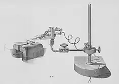 In 1840 Müller made du Bois-Reymond his assistant in physiology, and as the beginning of an inquiry gave him a copy of the essay which the Italian physicist Carlo Matteucci had just published on the electric phenomena of animals.[5][6] This determined the work of du Bois-Reymond's life. He chose as the subject of his graduation thesis Electric fishes, and so commenced a long series of investigations on bioelectricity. The results of these inquiries were made known partly in papers communicated to scientific journals, but also and chiefly by his work Investigations of Animal Electricity,[7] the first part of which was published in 1848, the last in 1884.[4]