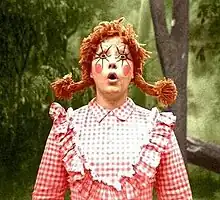 The character as portrayed by Reny de Oliveira. - Sítio do Picapau Amarelo would come back fourteen years later, in 2001, with Isabelle Drummond in the role.[11] Drummond was supposed to read for the part of Lúcia, but choose to read Emília's by herself, being cast at the age of 8. The role debuted her career and became strongly popular in the following years.[12] A Rede Globo television special presented by Drummond as Emília, in 2004, featured a scene where the doll encountered Dirce Migliaccio's character when looking through a mirror, seeing Dirce's Emília as her reflection. In another television special to celebrate Rede Globo's 40th anniversary, Isabelle Drummond (as a girl thar grew up watching the network) was digitally inserted in several programs of Globo, including past versions of Sítio. The actress left the series in 2006.