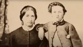 Lucy had been closely associated with Grant essentially from her birth, and they attended Mary Cook's school together. Like Grant, she was a member of the 13th Ward.[5] It was not until Grant broke off his courtship with Emily H. Wells (see below) that he started actively courting Lucy.[6]: 32 Lucy was initially reticent to fully accept Grant's advances, seeing herself as just a temporary replacement for Emily, but after he regularly walked her home from church services for several weeks without being invited into the Stringham home, she gave up and invited him in. They married a few months later.[6]: 32–33 For a time, Lucy was a school teacher.