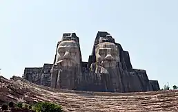 The sculpture of Emperors Yan and Huang is a monument in China that was carved from a mountain on the Yellow River. The overall monument height is 106 metres (348 ft); a 55-meter base platform with 51-meter busts on top. They depict the two mythical emperors Yan Di and Huang Di. The construction lasted 20 years and was completed in 2007,[1] at a cost of US$22.5 million.[2] They are located in Zhengzhou, the capital of Henan province, People's Republic of China. The statues commemorate politics and the economy.[3]