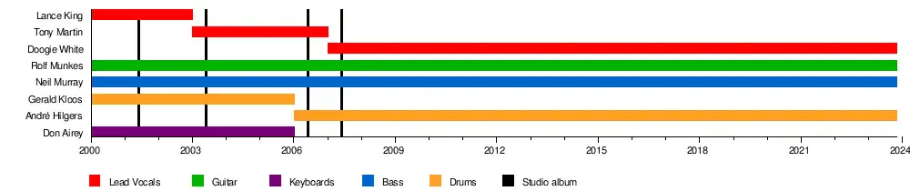 | Past members | Lance King Gerald Kloos Tony Martin Don Airey |