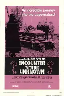 Encounter with the Unknown is a 1972 American anthology horror film directed by Harry Thomason in his directorial debut, and narrated by Rod Serling. It features three allegedly true stories involving the supernatural. The film was produced by Centronics International, an Arkansas-based studio founded by Thomason.