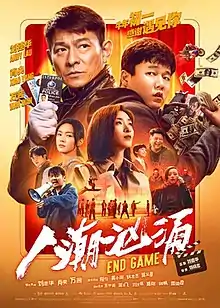 Endgame is a 2021 Chinese-Hong Kong action black comedy film co-written and directed by Rao Xiaozhi, produced by and starring Andy Lau. Lau stars as a world-class hitman who swaps identity with an unfortunate actor (Xiao Yang).[1] The film is a remake of the 2012 Japanese film Key of Life.[2] Production for the film began on 24 October 2019 and ended on 7 January 2020.[3] The film was released on 12 February 2021, the first day of the Chinese New Year holidays.[4]