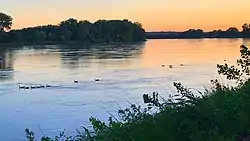 Canada geese on the Missouri River, English Landing Park, June 2018