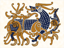 It is possible that it was made in memory of a Viking warrior who died in service of king Canute the Great,[3] and the creature on the stone may represent Sleipnir, Odin's eight-legged horse.[4]