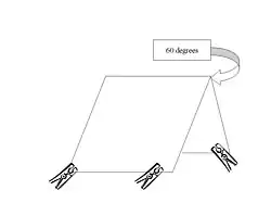 This technique was developed in Knoxville, Tennessee in 1989, and in the pilot study was found to be more effective than using an aerial net. The traps are constructed using manufactured sticky traps measuring approximately 9 inches (230 mm) by 10 inches (250 mm) in the shape of an inverted “V”, or pup tent, with the sticky material on the outside (see fig 1). These traps generally have four clothespins clipped to the bottom corners to provide ground clearance. The traps are placed at varying distances from the body, between 1 foot (0.30 m) and 12 feet (3.7 m), with one side facing the body. The sides of the traps should be set at a 60 degree angle. When collection is done the sticky trap should be labeled with both the time it was put out and the time it was picked up. In the lab insect can be individually removed and rinsed with paint thinner or xylene before preservation.[2]