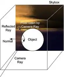 Reflection mapping is one of several approaches to reflection rendering, alongside e.g. screen space reflections or ray tracing which computes the exact reflection by tracing a ray of light and following its optical path. The reflection color used in the shading computation at a pixel is determined by calculating the reflection vector at the point on the object and mapping it to the texel in the environment map. This technique often produces results that are superficially similar to those generated by raytracing, but is less computationally expensive since the radiance value of the reflection comes from calculating the angles of incidence and reflection, followed by a texture lookup, rather than followed by tracing a ray against the scene geometry and computing the radiance of the ray, simplifying the GPU workload.