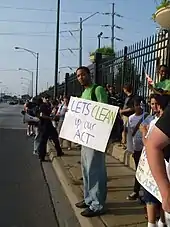 The environmental justice movement in the US was heavily influenced by the civil rights movement, and shares many of the same goals and tactics.[97][98] Existing community organizations and leaders that contributed to mobilize the civil rights movement have also engaged in environmental justice work.[98] Several prominent environmental justice lawsuits in the US have attempted to claim discrimination based on the Civil Rights Act of 1964, though none of these have so far been successful.[99]