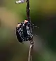 The adults of E. waterhousei, which emerge between April and July,[1] are recognisable by their dull black elytra with a greyish longitudinal stripe, extending from humeral angle towards apex of elytron, and orange-red head does not have black dorsal markings. Similar species include E. erythrocephala, the type and E. gorhami from Honshu, Japan.