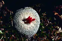 Epithelantha micromeris is a button cactus in the genus Epithelantha, found in Arizona, New Mexico, Texas and northeast Mexico. It is characterized by its white-grey spines growing on a globular shaped stem. The density of its white spines give it the illusion of being completely grey, making it very difficult to see the green color beneath. It grows to be 1–5 cm tall, and roughly 2–4 cm in diameter. E. micromeris produces small, pink-white flowers, often considered to be some of the smallest of the cacti. These flowers give way to a bright red, cylindrical fruit which contains several black seeds and also is edible.[1]