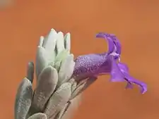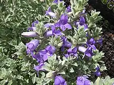 Eremophila hygrophana, also known as the blue emu bush,[2] is a flowering plant in the figwort family, Scrophulariaceae and is endemic to Australia. It is an erect, compact shrub with crowded, grey leaves and violet to purple flowers and is native to South Australia and Western Australia.
