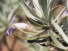 Eremophila rigens is a flowering plant in the figwort family, Scrophulariaceae and is endemic to Western Australia. It is an erect shrub with long, stiff, glabrous leaves and pale lilac-coloured to white flowers.