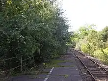 After the political changes of 1989 and 1990, the transport needs of the population changed. In particular, traffic peaks in rush hour traffic were distorted. Since the travel times by tram to the main station were similarly long but significantly shorter in the direction of the city centre, a separate train connection became superfluous. The connection was thinned out and then completely closed on 28 May 1995. Finally, two pairs of trains operated a day. In 2003, the Erfurt Nord-Erfurt-Marbach line was shut down by the Eisenbahnbundesamt.[8] The renovation of the Mittelhäuser Kreuz in 2012 meant that the Mittelhäuser Straße was renovated a bit and the track of the former railway crossing was removed.[9]