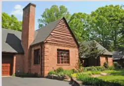Erle Stillwell House II is a historic home located at Hendersonville, Henderson County, North Carolina. It was built in 1935, and is a one-story, eclectic French Eclectic brick dwelling with some Tudor Revival style design elements. It has a multi-gable and hip roof and a massive brick chimney at the juncture between the main house and the garage wing. The recessed front entry porch features heavy-timbered arches and curved rafters, with a projecting front gable bay. It was designed and built by locally prominent architect Erle Stillwell, who built the neighboring Erle Stillwell House in 1926.[2]