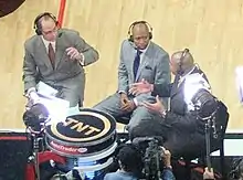 Ernest Thorwald Johnson Jr. (born August 7,[2] 1956) is an American sportscaster for Warner Bros. Discovery Sports. Johnson is currently the television voice and a studio host for Major League Baseball on TBS, hosts Inside the NBA for TNT, and NBA TV and contributes to the joint coverage of the NCAA Division I men's basketball tournament for Warner Bros. Discovery Sports and CBS Sports. His father was Ernie Johnson Sr., a Major League Baseball pitcher and Atlanta Braves play-by-play announcer.[3]
