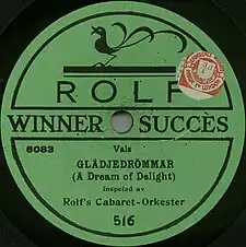 During the 1920s Rolf was known for producing revues that were acclaimed for their dazzling sets, first class actors and stirring music. He was also a lyricist and composer, who wrote, for instance, the words to Finska Valsen (The Finnish Waltz) and the music for Från Frisco Till Cap (From Frisco to the Cape).[3] He recorded his first song in 1910 and throughout his career made over eight hundred recordings.[4] He acted in a number of films as well.