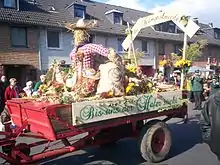 The Erntedankfest (English: "harvest festival") in Düsseldorf-Urdenbach is an annual traditional celebration, incorporating most parts of this borough and attracting thousands of tourists to thank God for the gifts of harvest. With a history of 90 years and about 40 participating groups it marks one of the biggest and most important Erntedankfest celebrations in the Rheinland.[1] It includes church services, huge parades and music in a traditional fair atmosphere.[2]