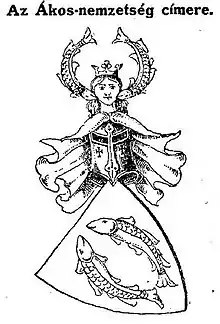 His only son, Stephen Ákos continued his father's policy of land acquisition and established a dominion in the last decades of the 13th century, based on his father's estates, which consisted of around thirty villages surrounding Dédes and Diósgyőr.[34] Stephen ruled de facto independently Borsod County, wedged in between the territory of Matthew Csák (north-western counties) and the dominion of Amadeus Aba (northern and north-eastern counties of the kingdom). The gens Ákos usurped royal prerogatives in his dominion, e.g. he granted lands and nobility to his followers. Stephen governed his possessions from the stone Diósgyőr Castle.[6]