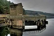 Errwood Reservoir is a drinking-water reservoir in the Peak District National Park, within the county of Derbyshire and very close to the boundary with Cheshire. The reservoir was the second of two reservoirs built in the Goyt Valley, the other one being Fernilee Reservoir. It was constructed by the Stockport Water Corporation at a cost of £1.5 million, with work being completed in 1967; it is currently owned and operated by United Utilities. The reservoir provides drinking water for the town of Stockport and its surrounding areas, and it holds 4,215 million litres (1.113×109 US gal) of water.