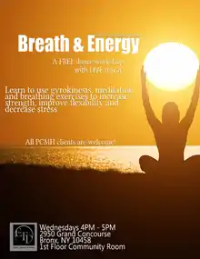 In 2013, Eryc Taylor Dance began a residency program at the Postgraduate Center for Mental Health, offering one "Movement Expressions" workshop each week. Due to positive results, PCMH turned the residency into a permanently scheduled program, seven workshops a week at seven different residences. Since then, ETD Outreach has expanded into numerous supportive housing & wellness organizations throughout the five boroughs including:[22]