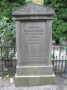 Esaias (Henrik Wilhelm) Tegnér Jr. (Swedish: [tɛŋˈneːr]; 13 January 1843, Källstorp, Malmöhus County – 21 November 1928, Lund) was a Swedish linguist. He was professor of eastern languages at Lund University 1879-1908, lead editor of Svenska Akademiens ordbok 1913-1919, member of the Bible Commission (writing a new translation) 1884-1917, and member of the Swedish Academy from 1882 onward. Tegnér was the grandson of the well-known poet Esaias Tegnér, also his namesake, and was brother-in-law to the poet and composer Alice Tegnér.
