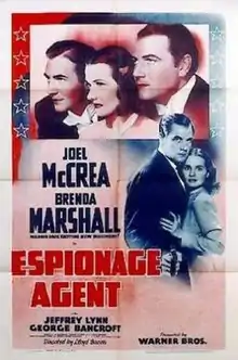 Espionage Agent is a pre–World War II spy melodrama produced by Hal B. Wallis in 1939. Directed by Lloyd Bacon, Espionage Agent, like many Warner Bros. movies, clearly identifies the Germans as the enemy. This was unlike many other movie studios during this period that did not want to antagonize foreign governments.