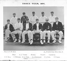 Essex improved rapidly from 1895, so that by 1897 they were in the running for the Championship, only losing it when Surrey beat them at Leyton.[3] They fell off after this despite beating a fine Australian team on a dubious pitch in 1899, never finishing higher than sixth between 1899 and 1932.[4] Their batting on Leyton's excellent pitches was generally good with the "Essex Twins" of Perrin and McGahey and the sound and skilful Jack Russell, but the bowling depended too much on Mead, Buckenham and later Douglas and when available Louden.