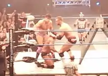After defeating Mr. Anderson on the May 29 episode of Impact Wrestling to become the number one contender,[66][67] Carter defeated Kurt Angle on June 25, 2015 (which aired on tape delay on the July 1 episode of Impact Wrestling) to win the TNA World Heavyweight Championship for the first time in his career.[68] Three days later, on June 28, at Slammiversary XIII, Carter and Tyrus defeated Anderson and Lashley in the co–main event.[69] On the July 8 episode of Impact Wrestling, he retained the TNA World Heavyweight Championship three times in one night against Norv Fernum, Shark Boy and Kurt Angle.[70][71] On the July 15 episode of Impact Wrestling, EC3 defeated Drew Galloway to retain his title.[72][73] At No Surrender, EC3 defeated Matt Hardy in a Full Metal Mayhem match.[74] He successfully retained his title against GFW wrestler PJ Black at Turning Point.[75] Ethan Carter III gave Matt Hardy a last chance to win his title, in a Title vs. Jeff Hardy's Services match, which Matt Hardy accepted. On the September 2 episode of Impact Wrestling EC3 retained his title and won Jeff Hardy's services. On the September 23 episode of Impact Wrestling, Ethan Carter III successfully retained his title against his former rival Rockstar Spud. Ethan Carter III finally dropped the championship to Matt Hardy, who pinned Drew Galloway in a three-way match on October 4, at Bound For Glory, after special guest referee Jeff Hardy betrayed him, officially ending Carter's reign at 101 days.[76]