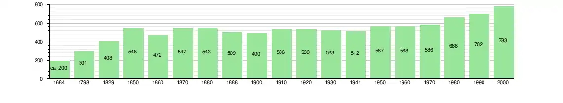 As of 2000, there were 310 private households in the municipality, and an average of 2.5 persons per household.[8] There were 81 households that consist of only one person and 16 households with five or more people. Out of a total of 315 households that answered this question, 25.7% were households made up of just one person and there were 4 adults who lived with their parents. Of the rest of the households, there are 93 married couples without children, 115 married couples with children There were 13 single parents with a child or children. There were 4 households that were made up of unrelated people and 5 households that were made up of some sort of institution or another collective housing.[9]