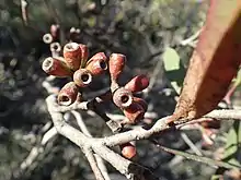 - Brooker, M. Ian; Hopper, Stephen D. (1991). "A taxonomic revision of Eucalyptus wandoo, E. redunca and allied species (Eucalyptus series Levispermae Maiden - Myrtaceae) in Western Australia". Nuytsia. 8 (1): 92–96. Retrieved 1 May 2019.