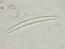 Eunotia is a genus of diatoms. They are fresh water diatoms, specifically common in lakes, and they are also common in fossil records, although their siliceous wall design may have been lost and they appear plane, an example is Eunotia tetradon.