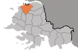 The Unryul iron mine, located north of Unryul-ŭp, is one of North Korea's leading sources of iron ore. A 4.6-kilometre (2.9 mi) belt conveyor, built in 1975, carries waste rock from the mine to the coast. The rock has been used to build dikes between offshore islets and reclaim shallow bays for farming, fishing and salt evaporation.[3][4][5]